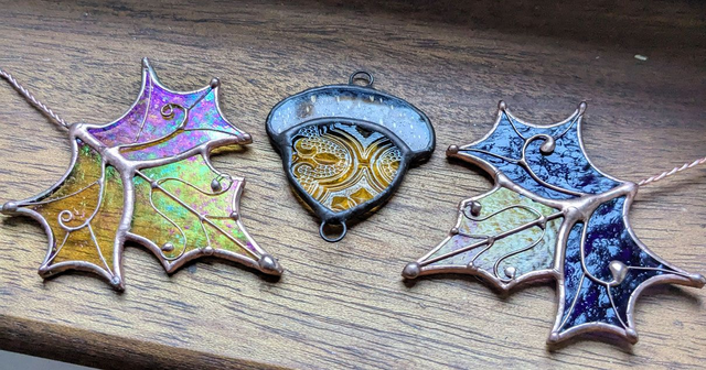 Réédition personnalisée comprenant deux feuilles et un gland, réalisée dans le même esprit que les créations présentées sur les fiches produits “Feuille” et “Gland”.